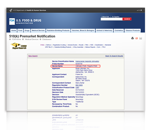 英智TMS成為首個國產(chǎn)經(jīng)顱磁獲批FDA認證。